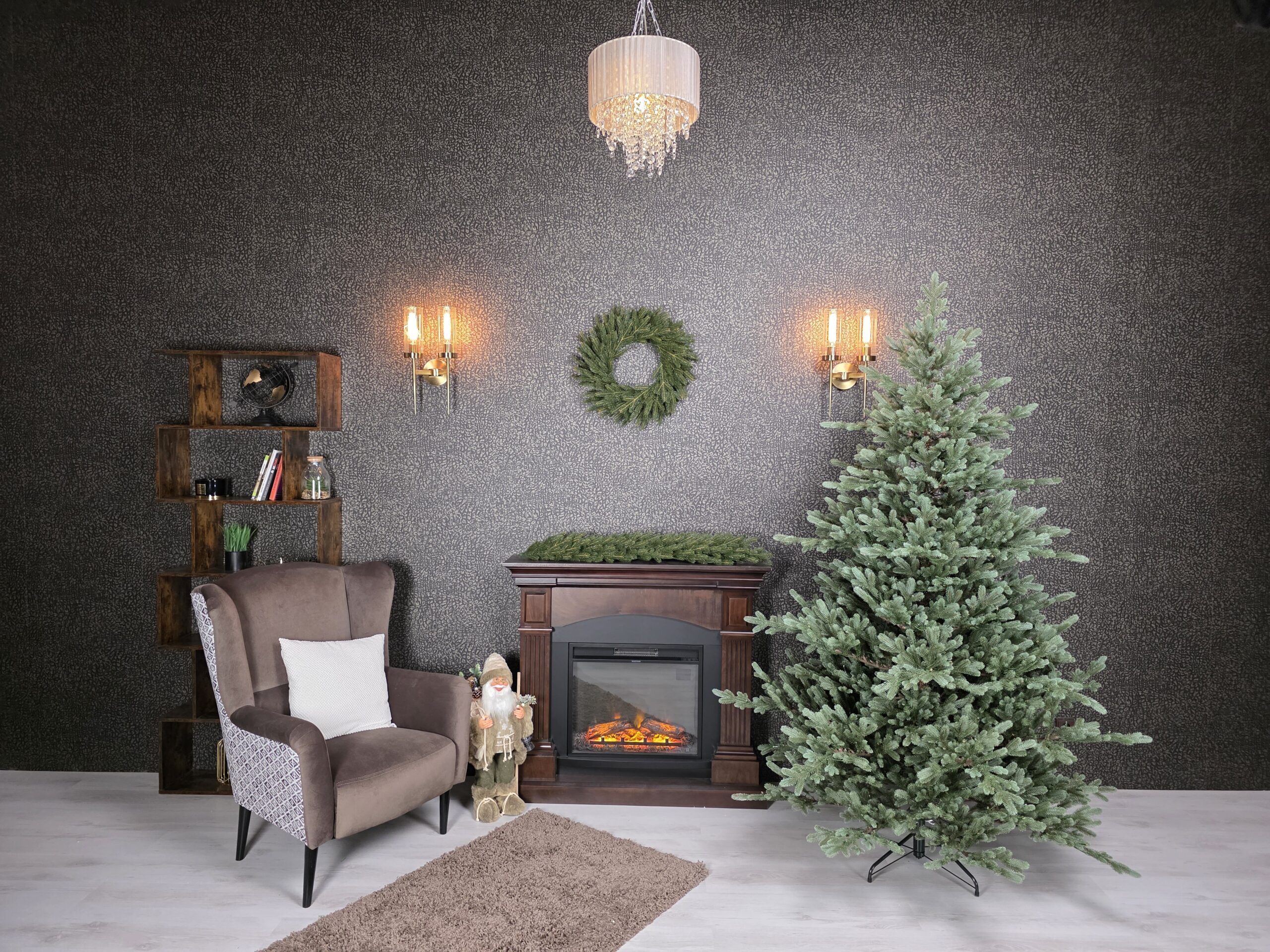 Ez a műfenyő úgy néz ki, mintha most hozták volna az erdőből. Vastag, sötétzöld tűlevelei és széles, fenséges formája tökéletesen utánozza egy élő fa kinézetét.