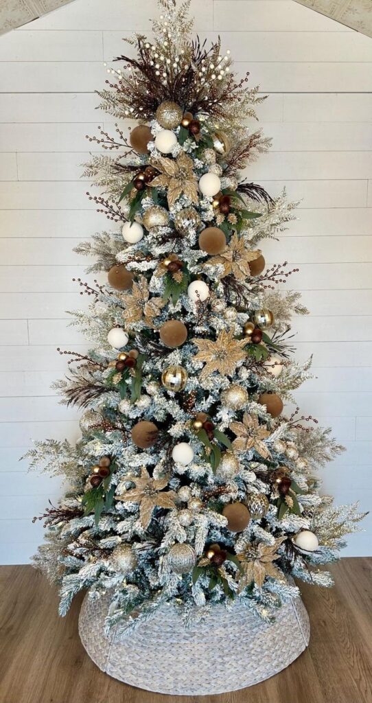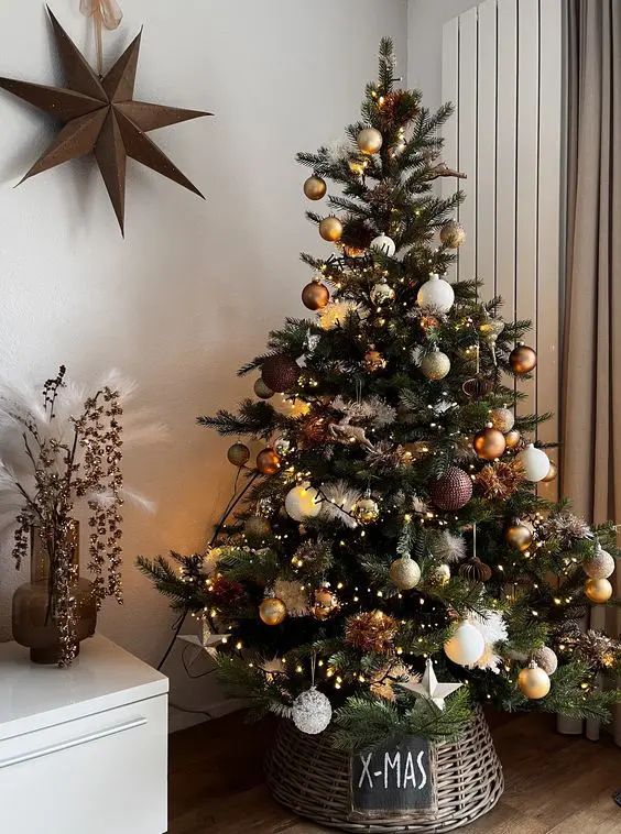 A karácsonyi dekoráció szerelmesei bármilyen stílusban megtalálhatják a kedvükre valót. Egy ragyogó, csillogással teli fényűző műfenyő? A divatos „rich brown” hatás még jobban kiemeli az arany és réz díszek fényét, míg a csillogó gömbök, szaténszalagok és kristálydíszek harmonikusan egészítik ki az összhatást.