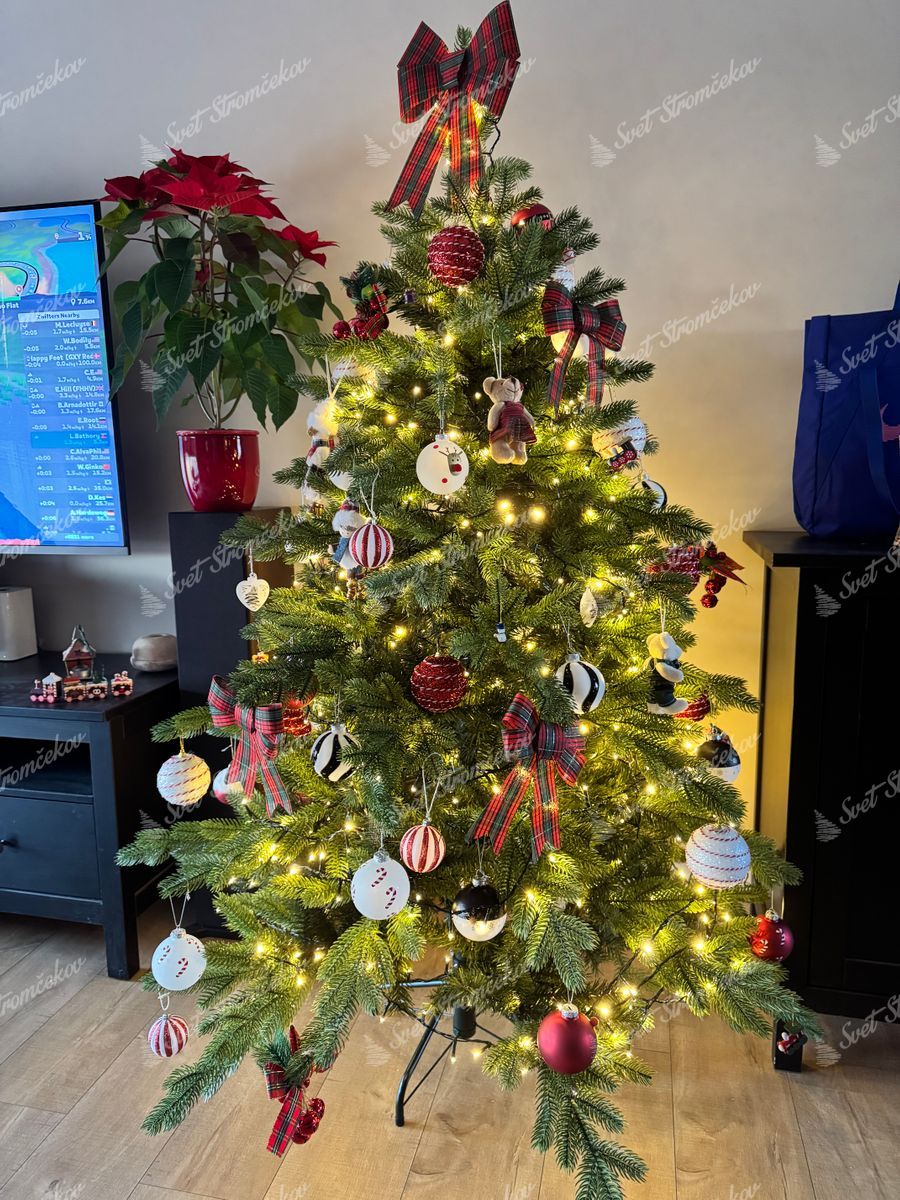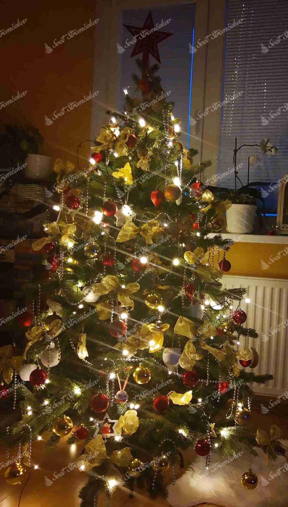 Élethű karácsonyfa, még nincs felállítva, de jól néz ki.