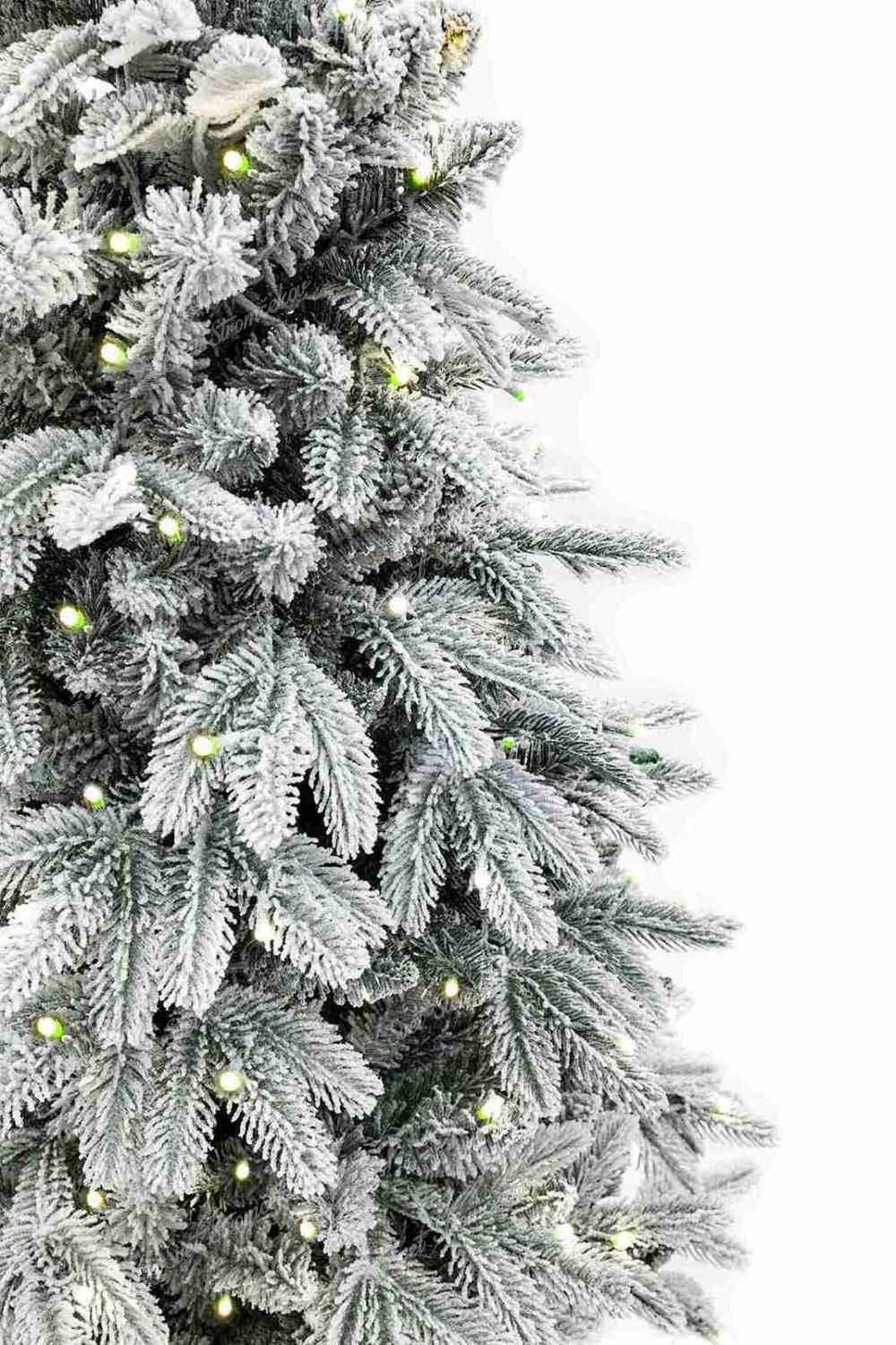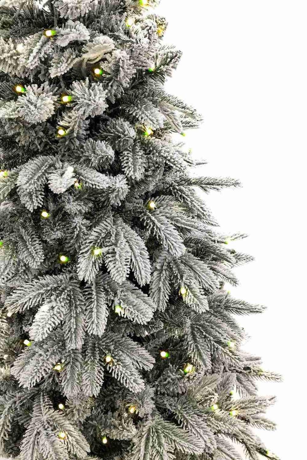 A vastag műhóréteggel borított 3D és PVC gallyak kombinációja a fehér karácsony hiteles hangulatát hozza el az otthonába, amelyet a 8 világítási funkcióval rendelkező, melegfehér színű LED izzósor még jobban kiemel.