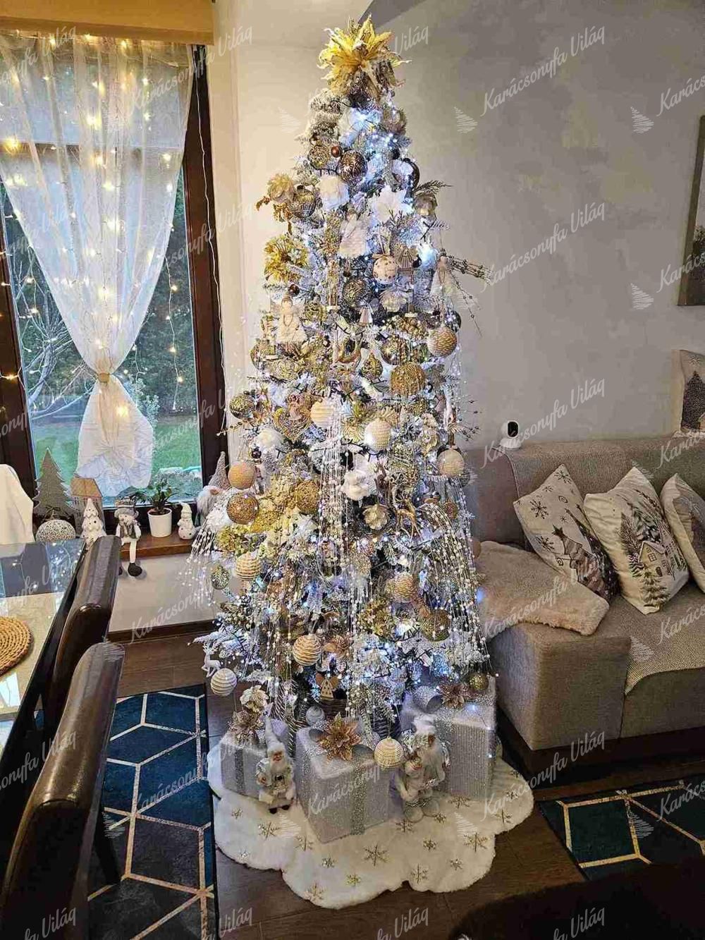 A 2024-es szezon újdonsága, a 3D-s Karcsú Fehér Jegenyefenyő, sűrűn hóval borított fenyőágakkal. A fa valósághű havas megjelenése varázslatos havas hangulatot teremt otthonában, keskeny kialakításának köszönhetően pedig ideális kisebb helyiségekbe.