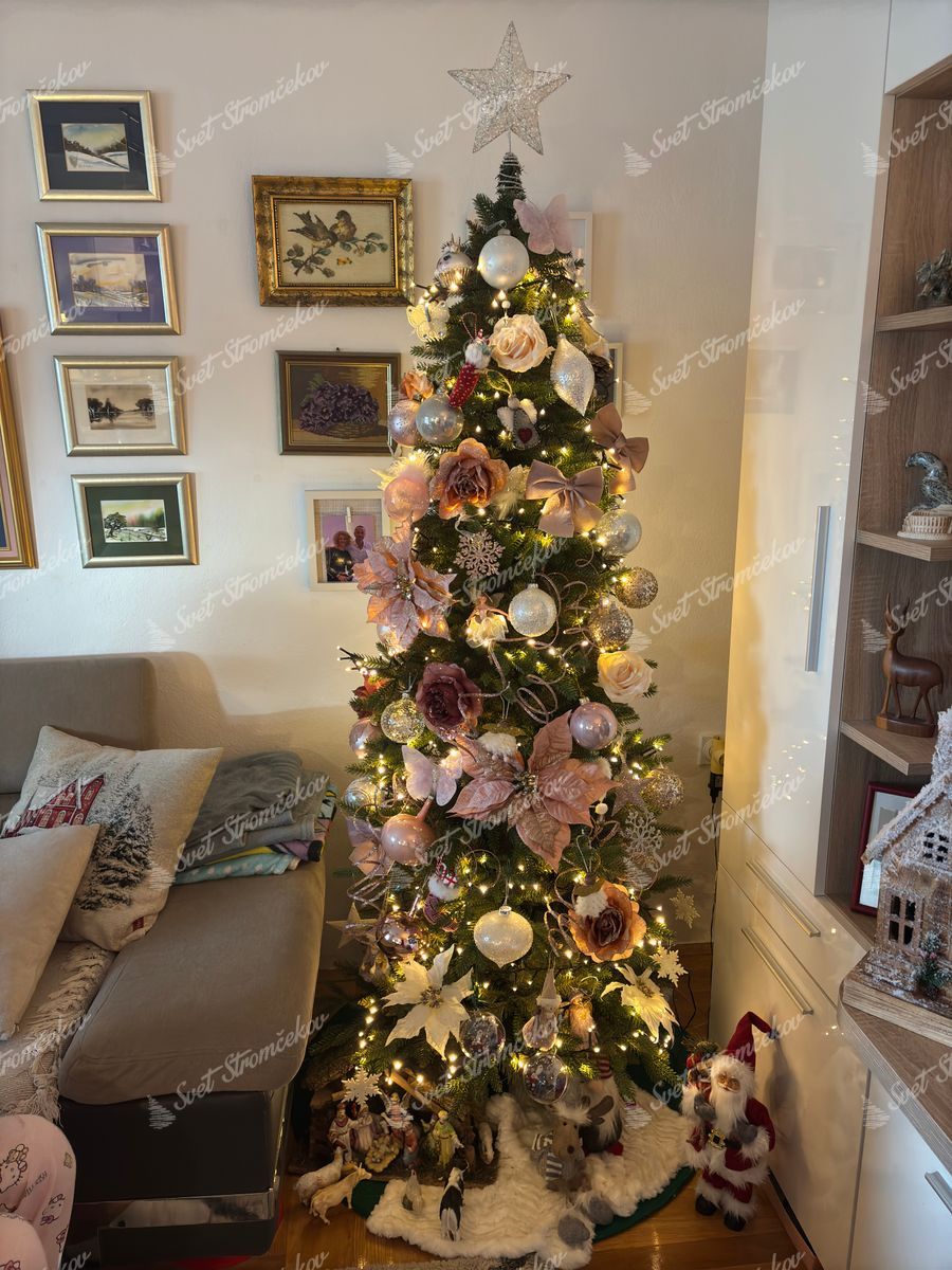 A fenyőfa valósághű, 3D-s, természetes zöld színű gallyakból áll, amelyeket a fenyőfa belsejében ugyanilyen színű hagyományos PVC gallyak egészítik ki. A 3D-s ágak és a PVC gallyak együttesen biztosítják a fenyőfa valóban sűrű megjelenését.